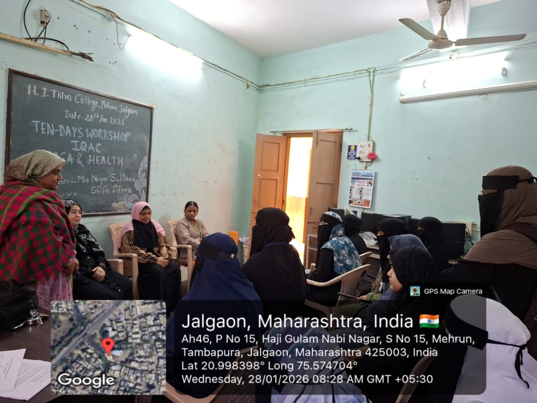 इकरा एजुकेशन सोसायटी, जलगांव के तत्वावधान में एच. जे. थीम कॉलेज ऑफ़ आर्ट्स एंड साइंस, मेहरून, जलगांव में योग और उसके शारीरिक एवं मानसिक लाभों को उजागर करने के उद्देश्य से 10 दिवसीय योग कार्यशाला का सफल आयोजन किया गया।
