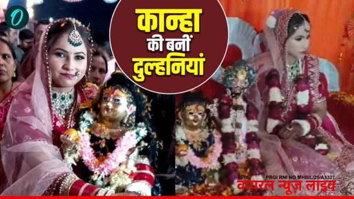 बदायूंकेइस्लामनगरथानाक्षेत्रकेब्यौरकासिमाबादगांवमेंयहअनूठाविवाहशनिवार6दिसंबरकोसंपन्नहुई।समारोहमेंश्रीकृष्णकीमूर्तिकोदूल्हेकीतरहसजायागया।बारातजबपिंकीशर्माकेघरपहुंची,तोद्वारपूजाकीगई।पिंकीनेश्रीकृष्णकीप्रतिमाकोगोदलेकरस्टेजपरजयमालाअर्पितकी।वृंदावनसेआएकलाकारोंनेभक्तिपूर्णनृत्यप्रस्तुतकिए।