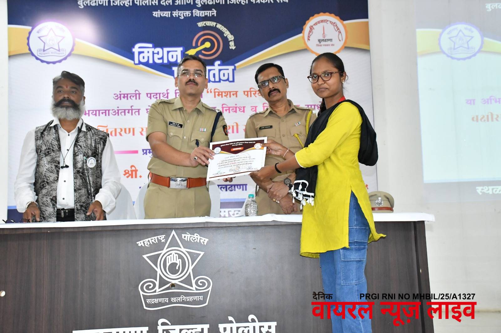 बुलढाणा : अंमली पदार्थांच्या दुष्परिणामांबाबत जनजागृतीसाठी जिल्हा पोलीस दल आणि जिल्हा पत्रकार संघ यांच्या संयुक्त विद्यमाने राबविण्यात येत असलेल्या “मिशन परिवर्तन” उपक्रमांतर्गत आयोजित निबंध व चित्रकला स्पर्धेतील विजेत्यांचा सन्मान सोहळा पोलीस मुख्यालय, बुलढाणा येथे मोठ्या उत्साहात पार पडला.