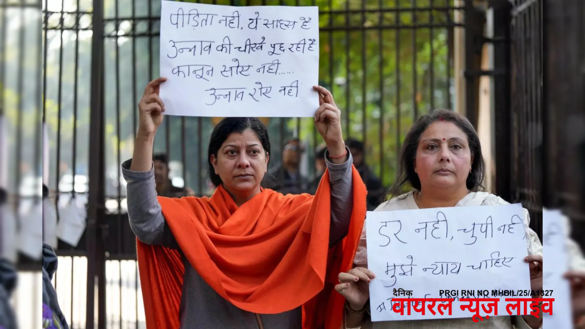 दिल्ली। उन्नाव रेप प्रकरण में दोषी ठहराए गए पूर्व विधायक कुलदीप सिंह सेंगर की सज़ा पर रोक और उन्हें सशर्त ज़मानत दिए जाने के खिलाफ शुक्रवार को दिल्ली हाईकोर्ट परिसर के बाहर विरोध प्रदर्शन किया गया। इस प्रदर्शन में उन्नाव पीड़िता के परिजनों के साथ कई महिला अधिकार कार्यकर्ता भी शामिल रहीं। सभी ने अदालत के इस निर्णय पर गहरी चिंता व्यक्त की और कहा कि इससे यौन हिंसा के पीड़ितों का भरोसा कमजोर पड़ता है।